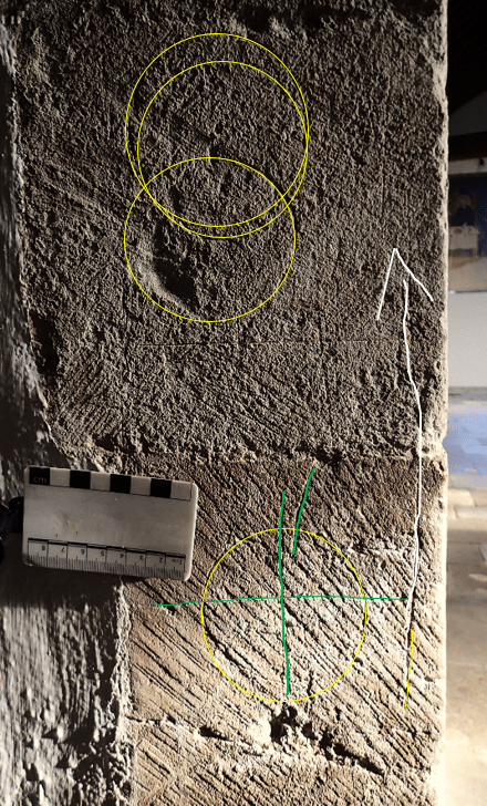 Left: Marian mark on the font at St George’s church, Crowhurst. Right: the ceases in some people’s hands bear a…
