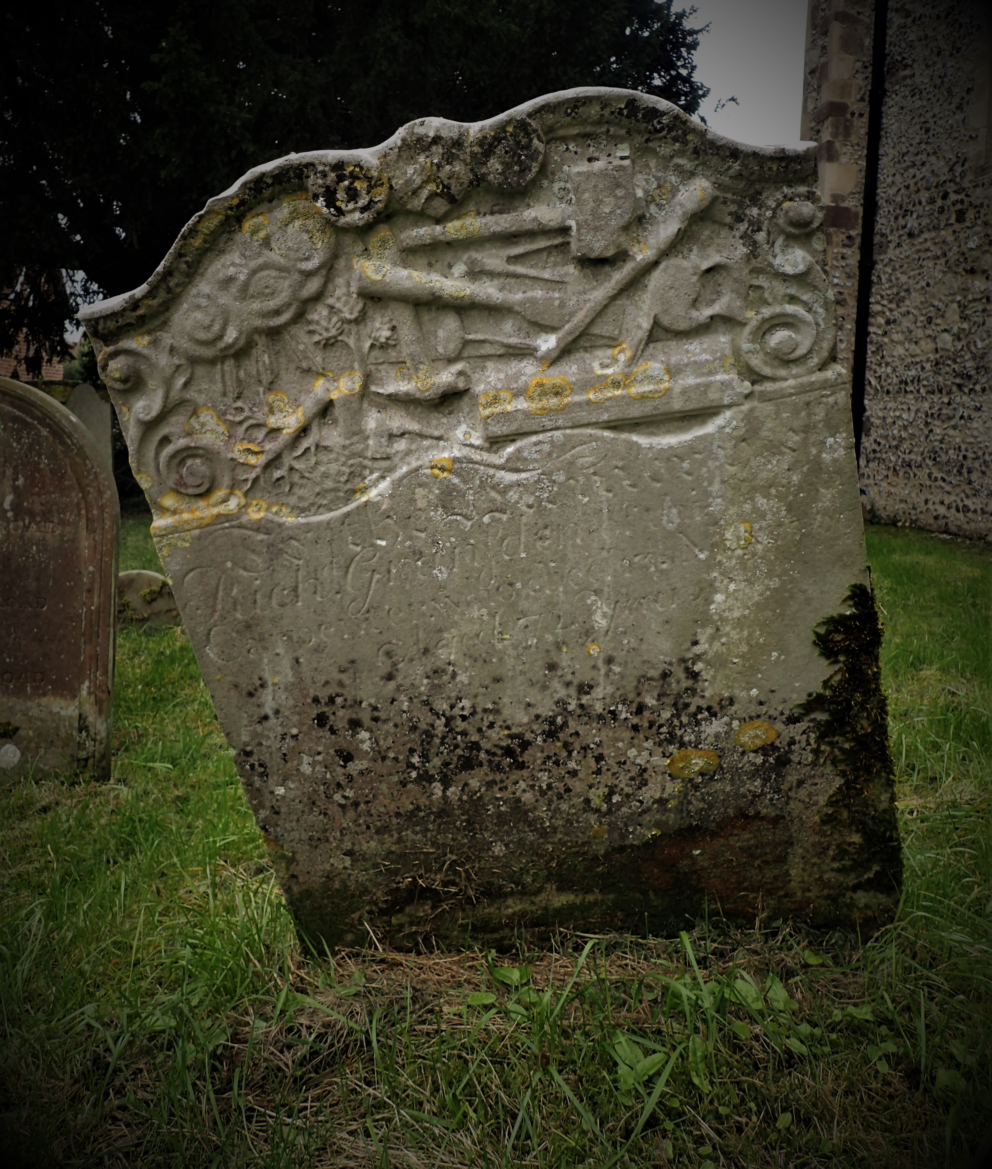 Sometimes headstones depict the craftsman’s tools of their profession such as this one at St Mary Magdalene church, Cobham, Kent which reads: