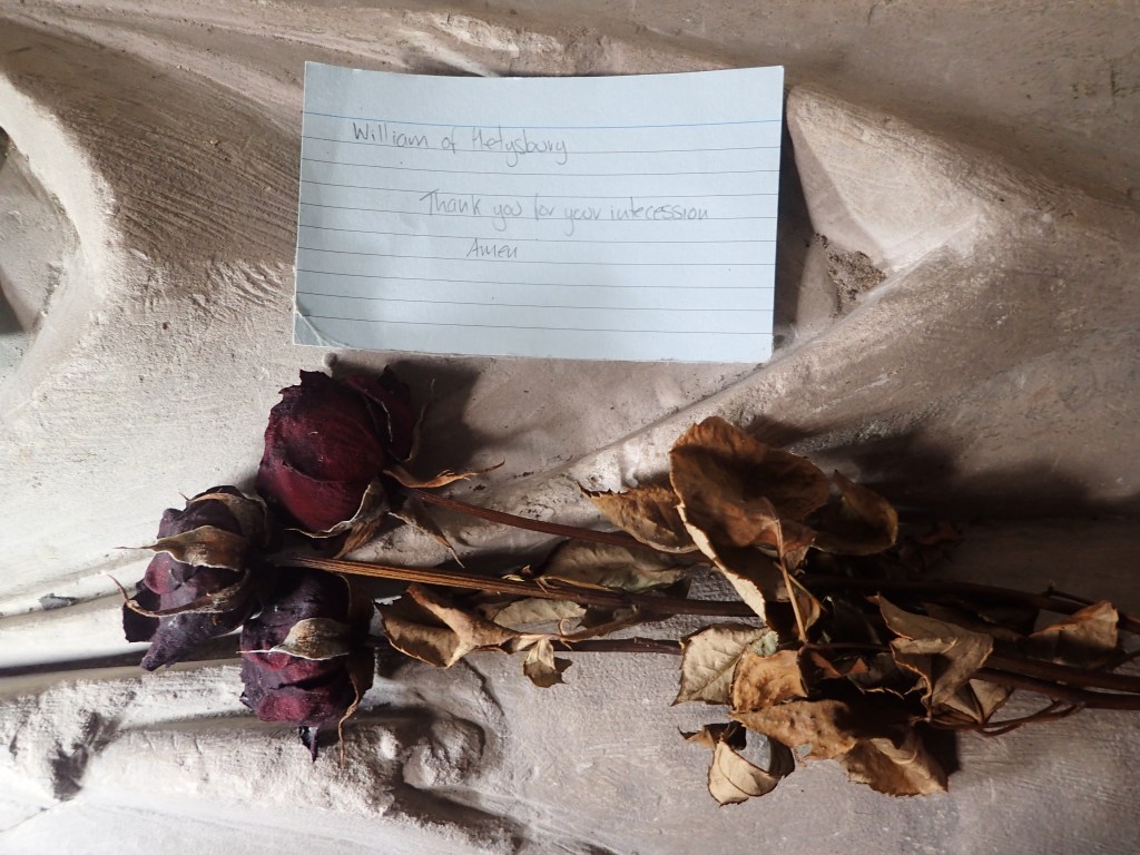 When surveying the church the author found several notes laid upon the effigy’s chest, along with three red roses (Plates 4 & 5). One of the notes thanked William for his ‘intercession’ whist the other looked like the writing of a child; furthermore, William’s name had been misspelt suggesting a degree of poor literacy.3