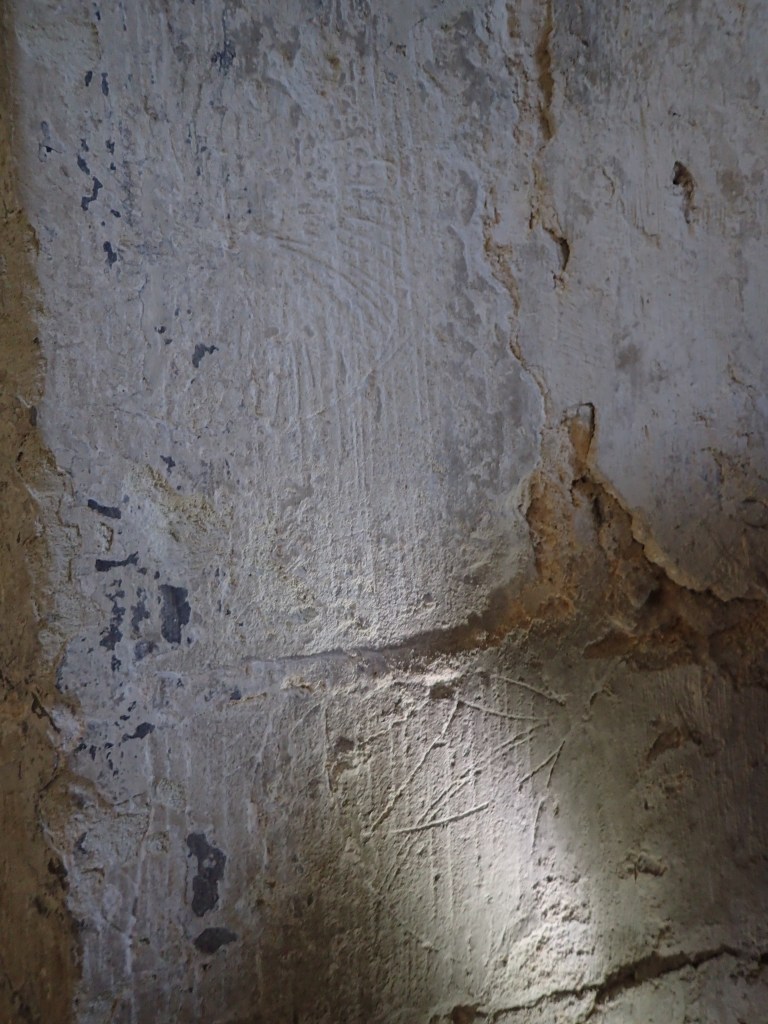 The graffito is located immediately above a larger (although fragmentary) hexfoil / daisy wheel which has also emerged from under layers of plaster and whitewash (Plate 3).