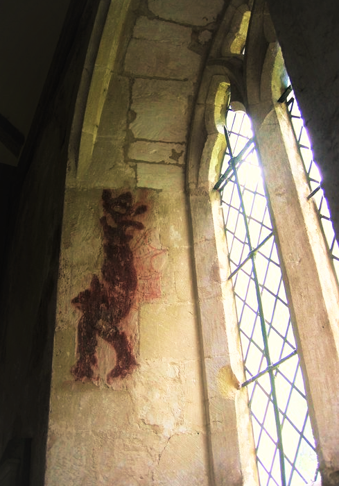 In this photograph (above), the devil (or one of his minions) appears to be entering via a window in the church of the Assumption of the Virgin Mary, Beckley in Oxfordshire. It is, in fact, part of the 15th century ‘Doom’ painting in the church. The painting bears a strong resemblance to the figure in the woodcut from ‘The History of Witches & Wizards’ (1720) (below) which appears to depict the Devil offering wax dolls to four witches with the aim, no doubt, to affect maleficium.