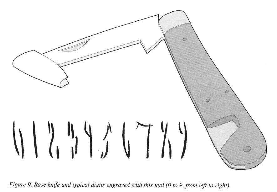 Closer examination reveals both a saltire ‘X’ and a Marian Mark (in the ‘VV’ form) which have been minutely cut into the burn mark itself prior to it being painted. The letters are only a few millimetres in height and it must have been exacting work to keep the cuts within so small an area (Perkins 2019: 4).