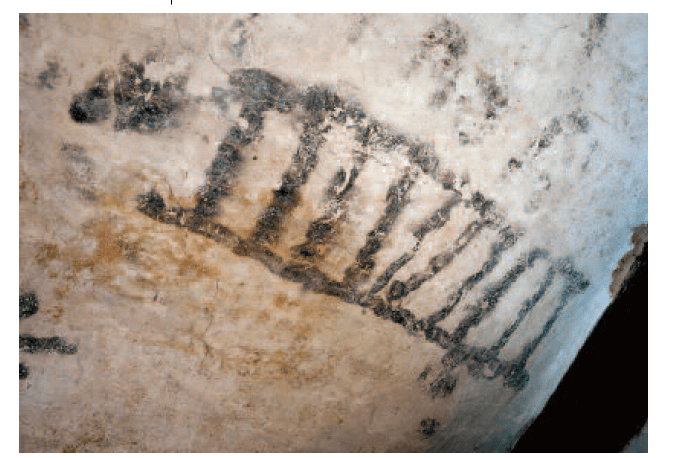 In an effort to interpret the range of symbols depicted on the ceiling, Easton made a link between the incorporation of several ‘grid iron’ and ‘ladder’ motifs among the symbols marked on the ceiling and the use of the grid iron as a musical instrument during the festival of Twelfth Night. The grid iron, along with an array of ordinary household objects, was sometimes taken up as a ‘rude’ instrument to help make ‘rough music.’ The resulting cacophony was intended to, ‘drive away spirits’ from the home (Easton 2011: 56-57). Subsequently, both of these motifs have been regularly recorded as part of the corpora of graffiti recorded across the secular and religious buildings of England. In these contexts they have been interpreted as visual representations of ‘spirit traps’ – an ‘overt’ type of apotropaic placed to entrap invading evil spirits (Champion 2017b).