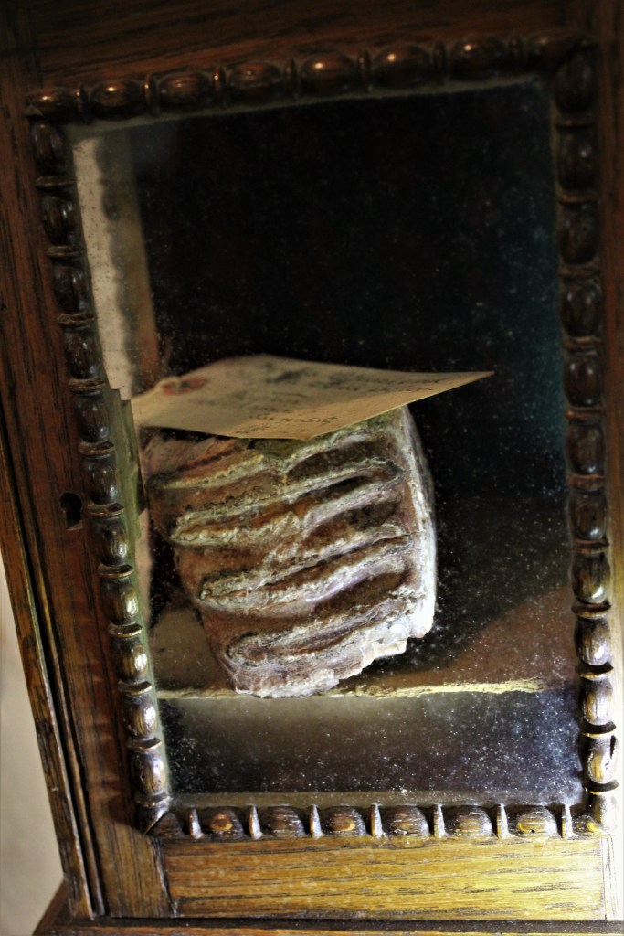 Objects like these, such as commonly-found fossils and prehistoric flint tools were once believed to have possessed magical or evil-averting powers. Belemnites were believed to be the physical manifestation of lightning bolts having hit the ground and were thought to have curative qualities – efficacious against rheumatism and sore eyes. Unusual-looking stones and fossils were often placed into the livestock’s drinking water as an animal cure-all. Man-made objects such as Neolithic stone axe heads were similarly revered and curated in later periods (Merrifield 1987:160). Prehistoric arrowheads were referred to as ‘thunder-stones’ and collected in the belief that they were created by lightning and, if carried upon the person, would protect the individual from a lightning strike (Hoggard 2020: 125).