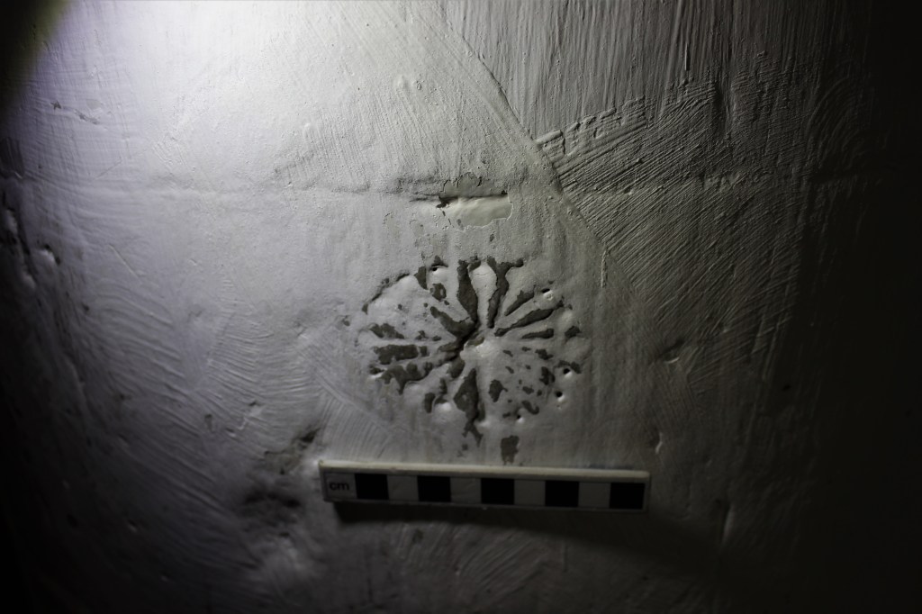 A preliminary survey of St Lawrence’s has also revealed a substantial corpora of memorial and apotropaic graffiti throughout the church. A carved wheel (with internal radiating spokes not unlike a miniature ‘Wheel of Life’ or solar symbol) has been recorded in the chancel, close to where the tooth and blade were purported to have been found.
