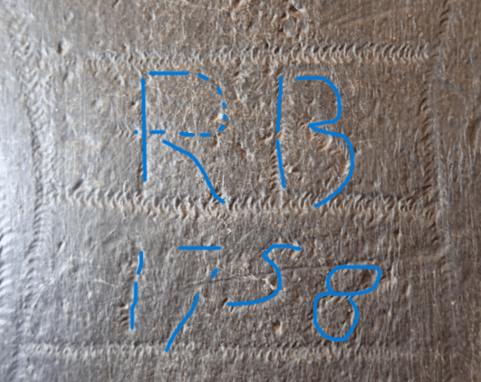 Plate 14: Possibly reads: ‘R B 1758,’ shoe outline, Saint Mary the Virgin, Chalk, Kent.