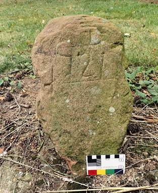 Plate 14: Headstone (left) ‘M L 1702’ and (right) ‘L..(?).1723.’ Photo: © W Perkins 2024