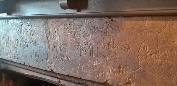 With this as the working hypothesis, it should then have been simplicity itself to correlate the initials in the memorials with the parish burial records of the church. Paradoxically, the majority of graffiti examples cannot be matched to the church records (Champion 2015: 203). Therefore, although the interpretation appears sound, there is still an element of mystery surrounding this lack of correlation between the graffito as recorded and existing documents. Further, few of the recorded memorials use the visual conventions or devices deployed on the headstones of the period.