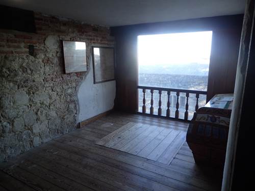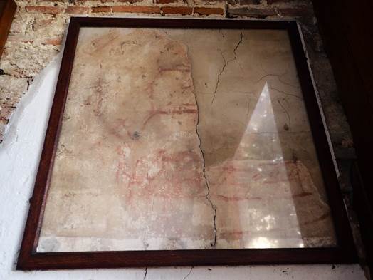 Observation deck, view to the south-east. A wall painting of a ship was discovered in the 20th century, made onto the plaster (it is framed in the top left-hand corner) Photo: © W Perkins 2024.